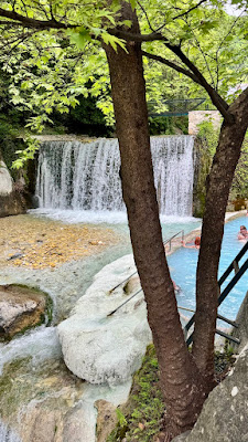 Viel Grün, uralte Bäume, ein Wasserfall und daneben die verschiedenen Badebecken mit 37 Grad warmem Heilwasser…wunderbar.